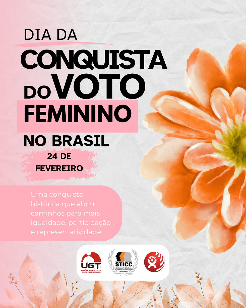 Há 94 anos, o código eleitoral brasileiro passava a reconhecer o direito de voto às mulheres. O STICC POA parabeniza todas as trabalhadoras da construção civil de Porto Alegre que, além de transformarem a paisagem da nossa cidade, utilizam sua voz e seu voto para garantir que a categoria feminina seja respeitada e valorizada. A luta por direitos continua em cada obra e em cada eleição!